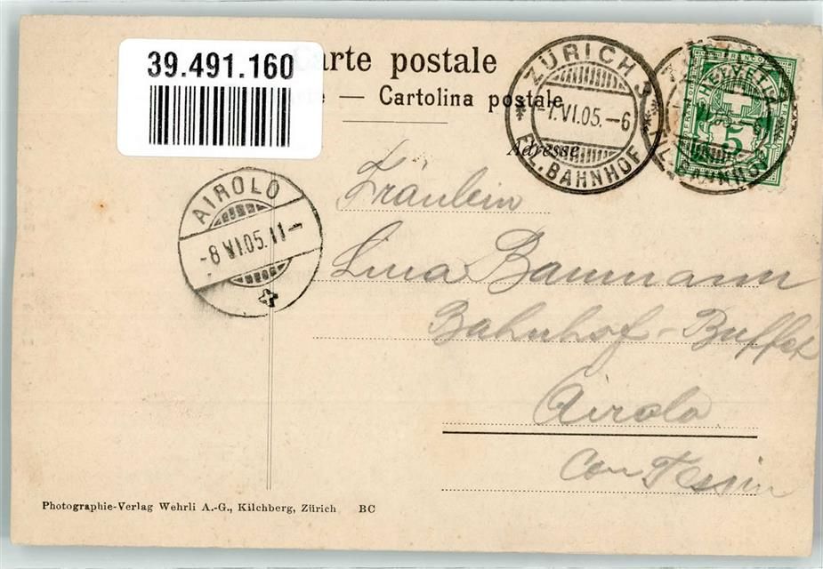 8000 Zürich 1905 Gebrauchsspuren Hotel Baur au Lac