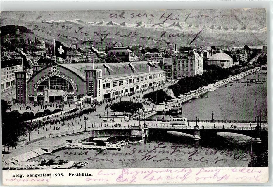8000 Zürich 1905 Lithographie Sängerfest Festhütte 1905 Straßenbahn