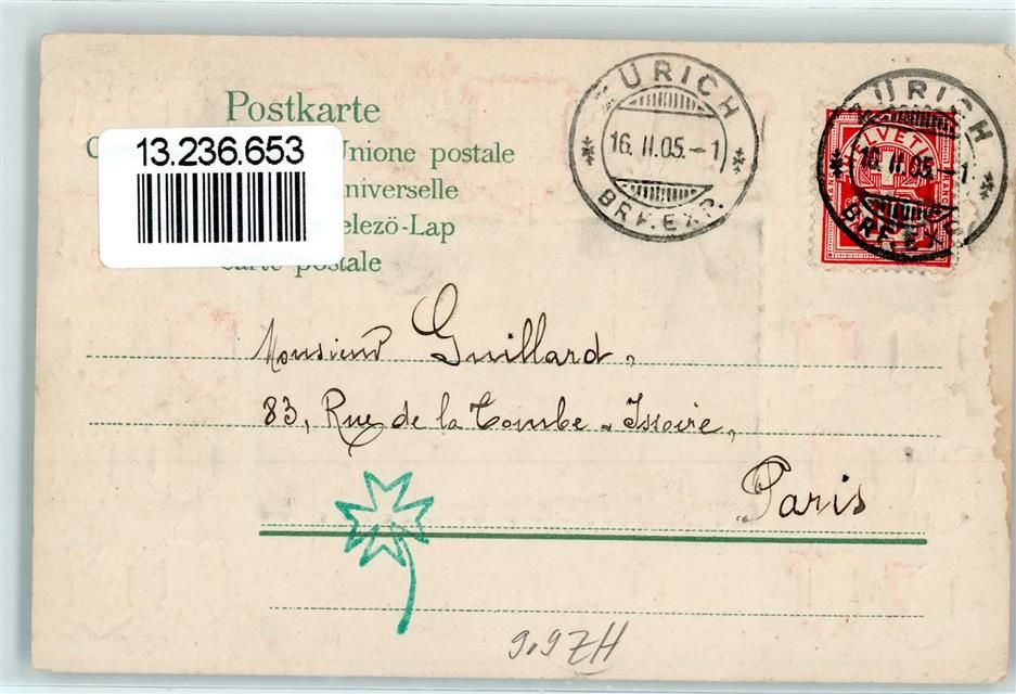 8000 Zürich 1905 Prägedruck Sonnenquai Wappen