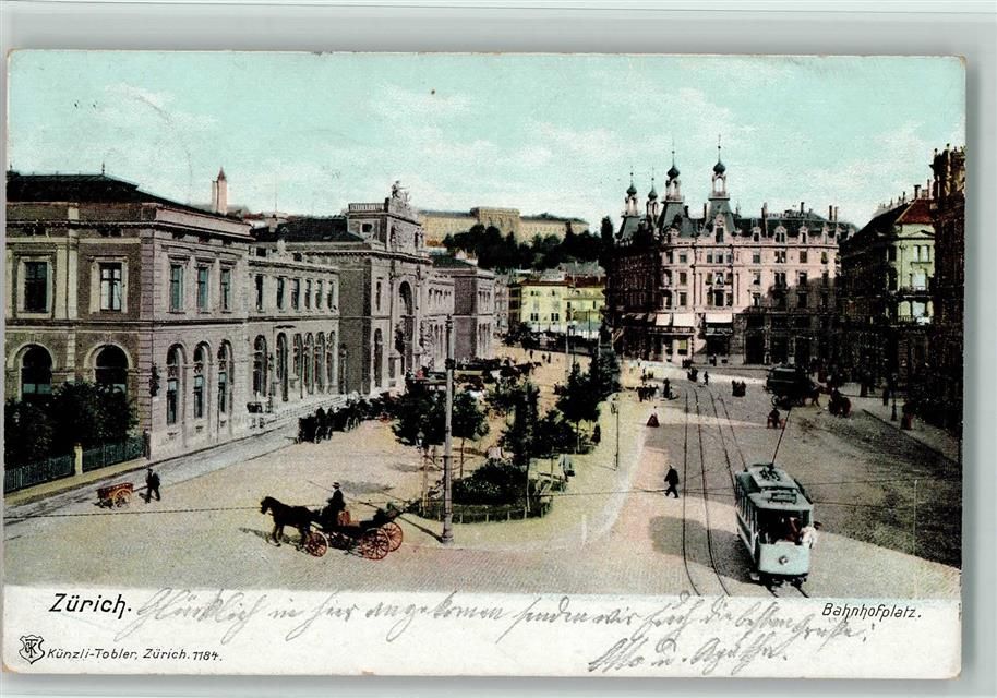 8000 Zürich 1906 - Bahnhofplatz Tram Pferdekutsche