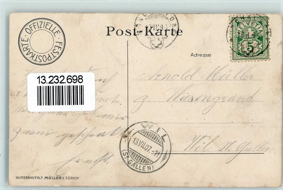8000 Zürich 1907 - Eidgen. Schützenfest sign