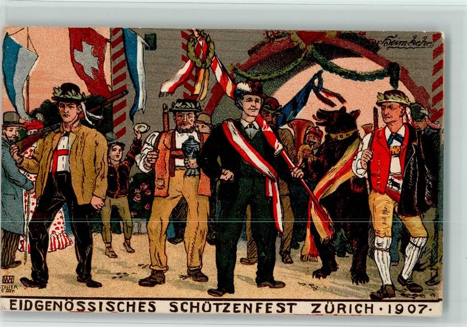 8000 Zürich 1907 Lithographie / Künstlerkarte offiz. Festkarte - Schützenfest 1907 AK