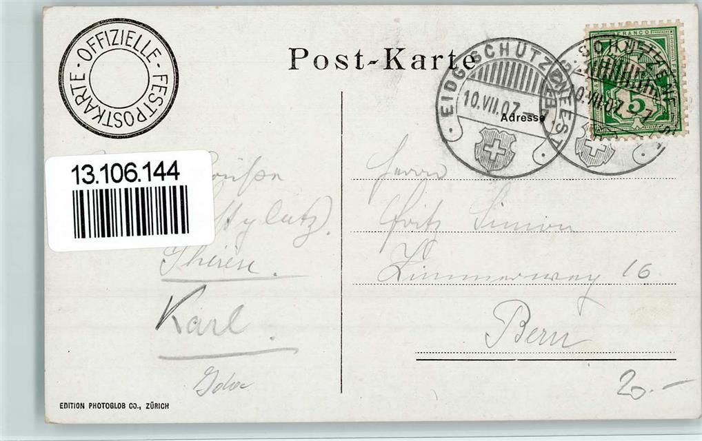 8000 Zürich 1907 - Offitz. Festpostkarte - Schützenfest 1907 - Tonhalle AK