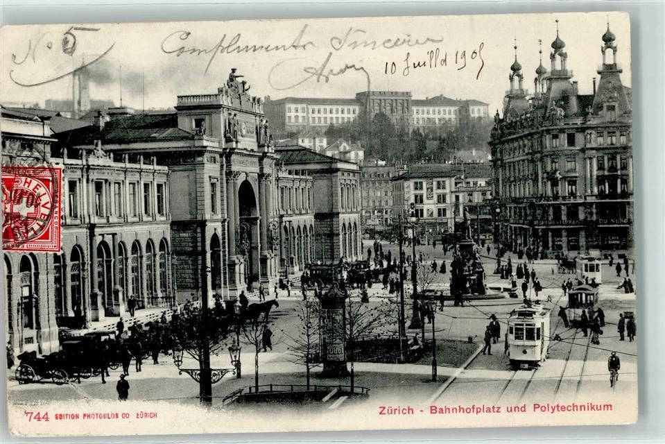 8000 Zürich 1909 - Bahnhofplatz Escherdenkmal Tram