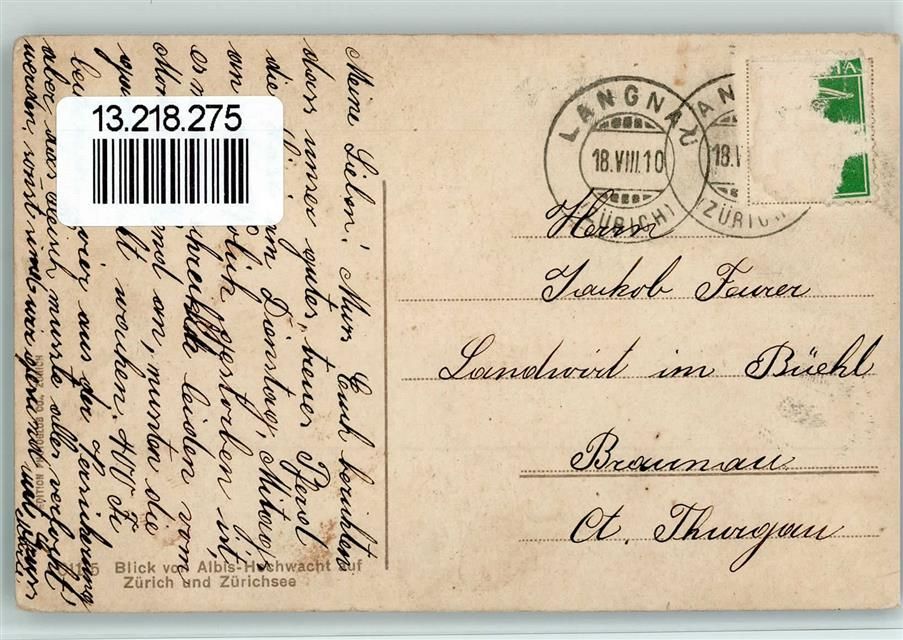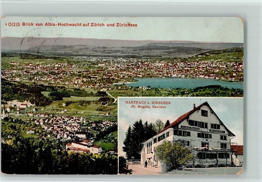 8000 Zürich 1910 - Blick von Albis-Hochwacht auf Zürich und Zürichsee Gasthaus Zum Hirschen