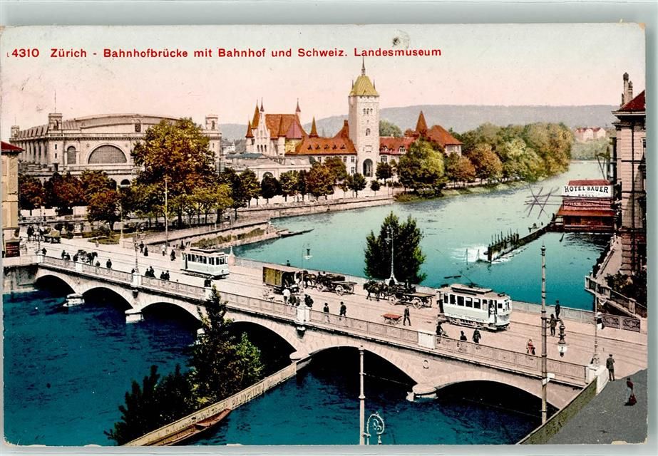 8000 Zürich 1912 - Bahnhof Bahnhofbrücke Straßenbahnen Landesmuseum