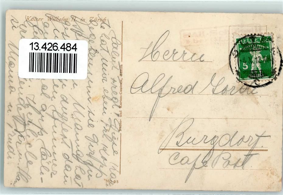 Zürich, Kasier Wilhelm II. Porträt Soldat Fahne Passepartout