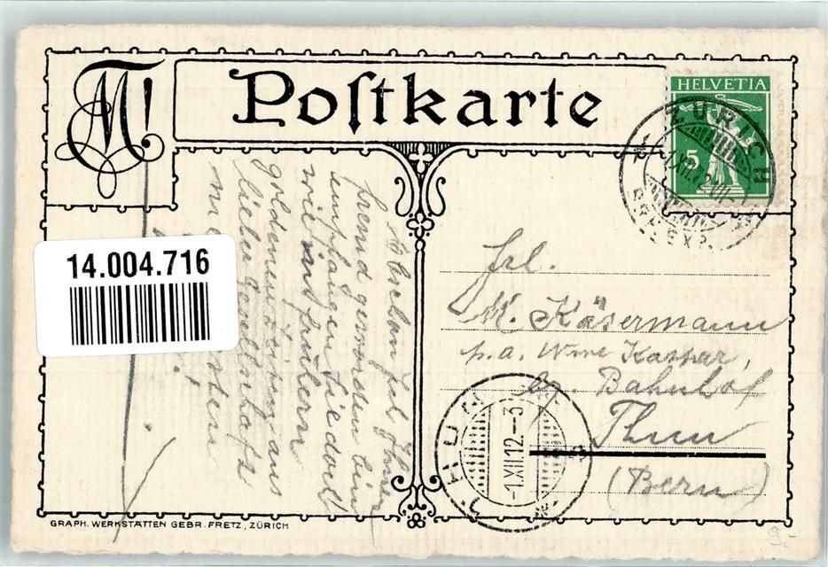 8000 Zürich 1912 - sign. A. Scherrer Säbel Wappenfarben