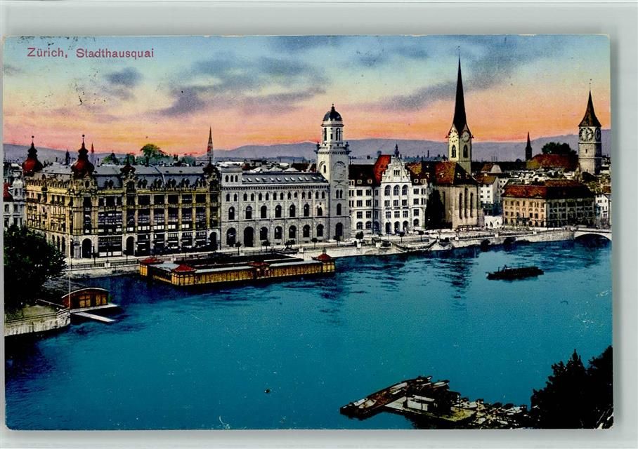 8000 Zürich 1912 - Stadthausquai Personendampfschiff Abendrot
