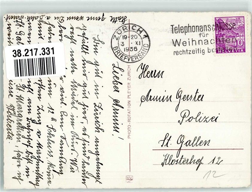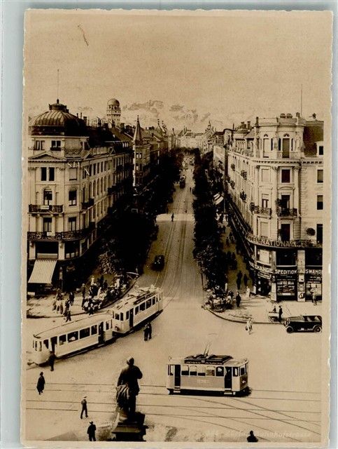 8000 Zürich 1936 Foto AK Straßenbahn Denkmal Geschäft Bahnhofstrasse