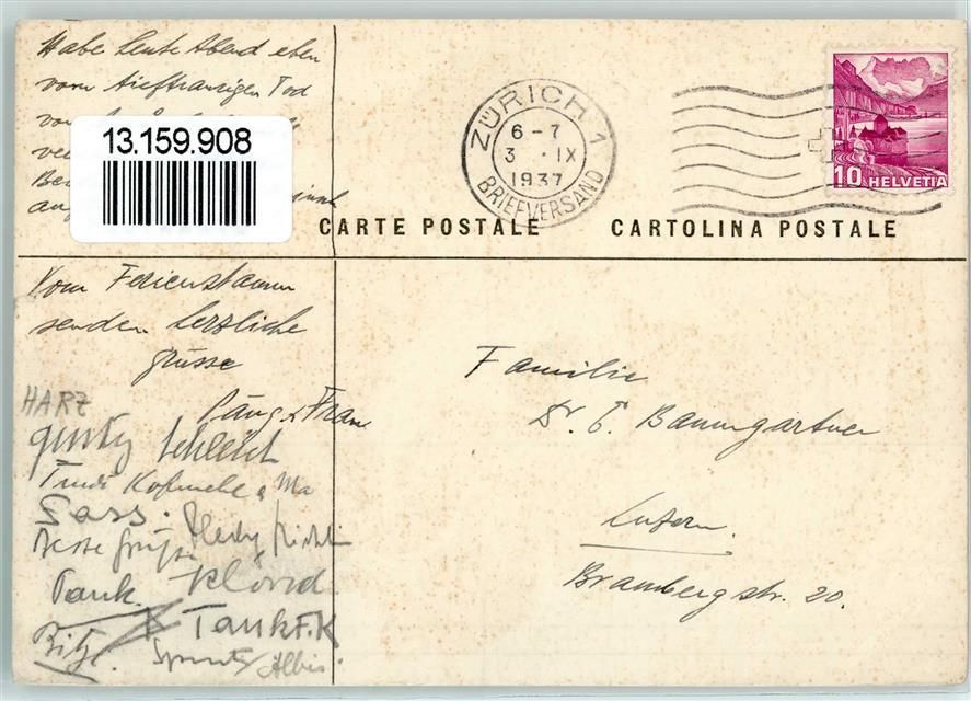 8000 Zürich 1937 Gebrauchsspuren Wappen sign. C. Senn Kyburger 1912-1937