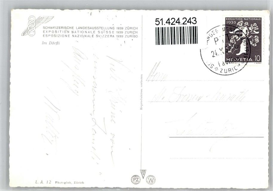 8000 Zürich 1939 - Kirche Denkmal Schweizerische Landesausstellung 1939