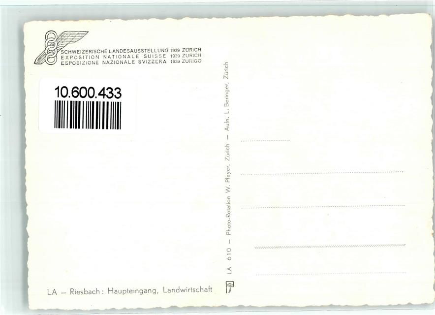8000 Zürich 1939 - Schweiz Landesausstellung Riesbach Haupteingang Landwirtschaft