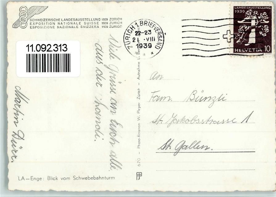 8000 Zürich 1939 - Schweizerische Landesausstellung Blick vom Schwebebahnturm