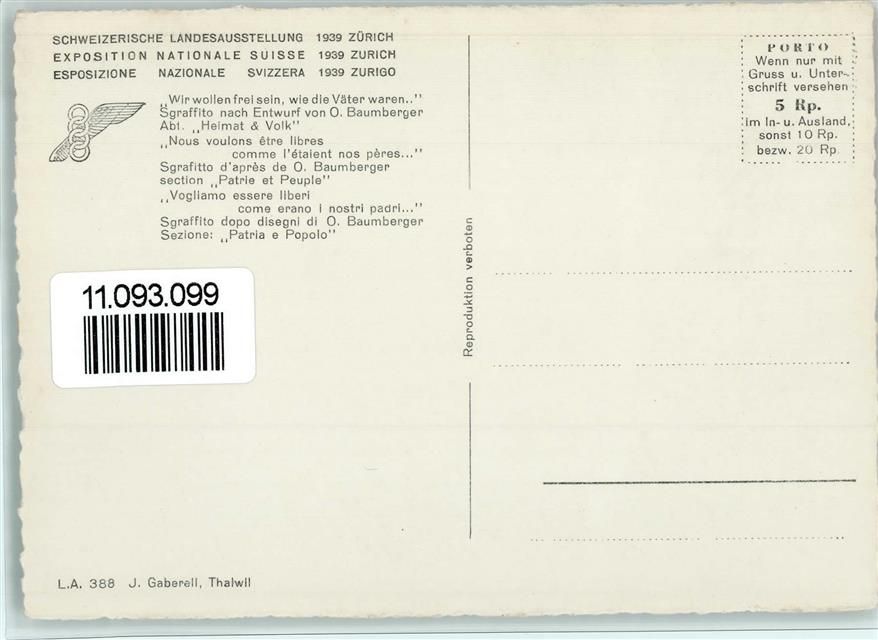 8000 Zürich 1939 - Schweizerische Landesausstellung Fahnen Schwören