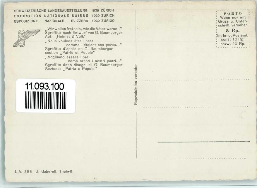 8000 Zürich 1939 - Schweizerische Landesausstellung Fahnen Schwören