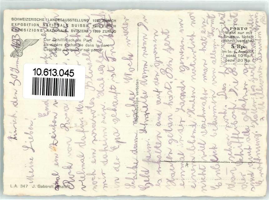 8000 Zürich 1939 - Schweizerische Landesaustellung Schifflibach