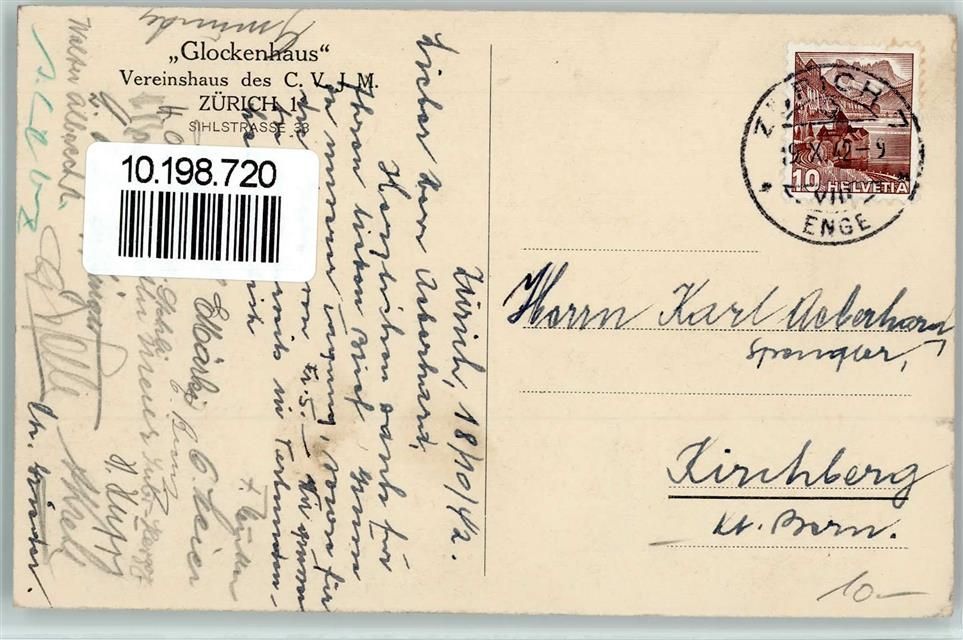8000 Zürich 1942 - Glockenhaus Vereinshaus des CVJM