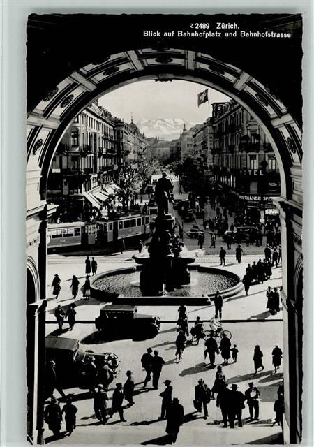 8000 Zürich 1955 - Blick auf Bahnhofplatz und Bahnhofstrasse Oldtimer Tram Brunnen