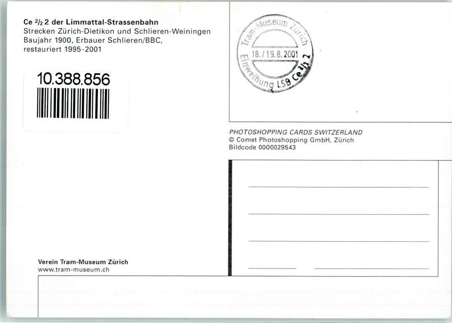Zürich, Ce 2/2 der Limmattal-Strassenbahn Strecken Zürich-Dietikon und Schlieren-Weiningen Baujahr 1900 Erbauer Schlieren BBC restauriert 1995-2001
