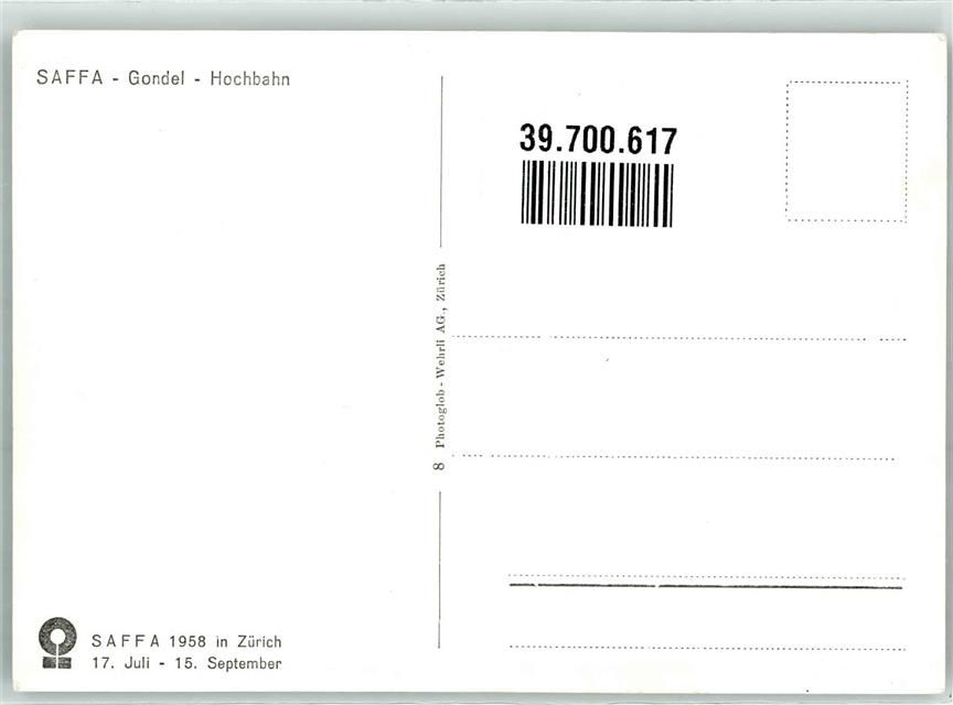 8000 Zürich - Ausstellung SAFFA 1958 Gondel Hochbahn
