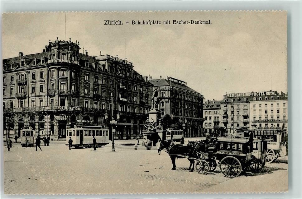 8000 Zürich - Bahnhofplatz Pferdekutsche Straßenbahn