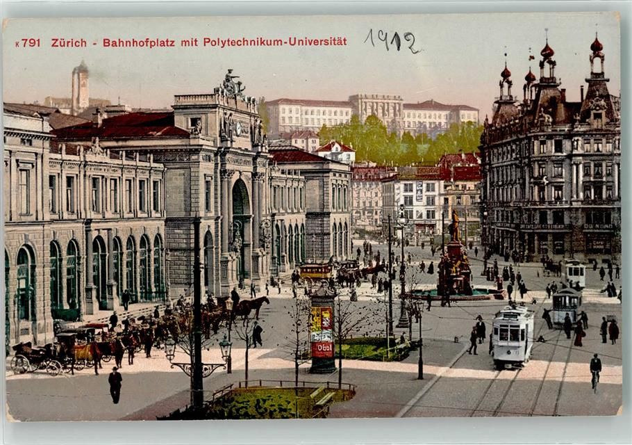 Zürich, Bahnhofplatz Polytechnikum Universität Tram Pferdekutschen