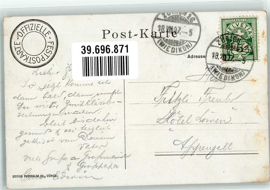 8000 Zürich - Eidgen. Schützenfest 1907 Tonhalle Gabentempel