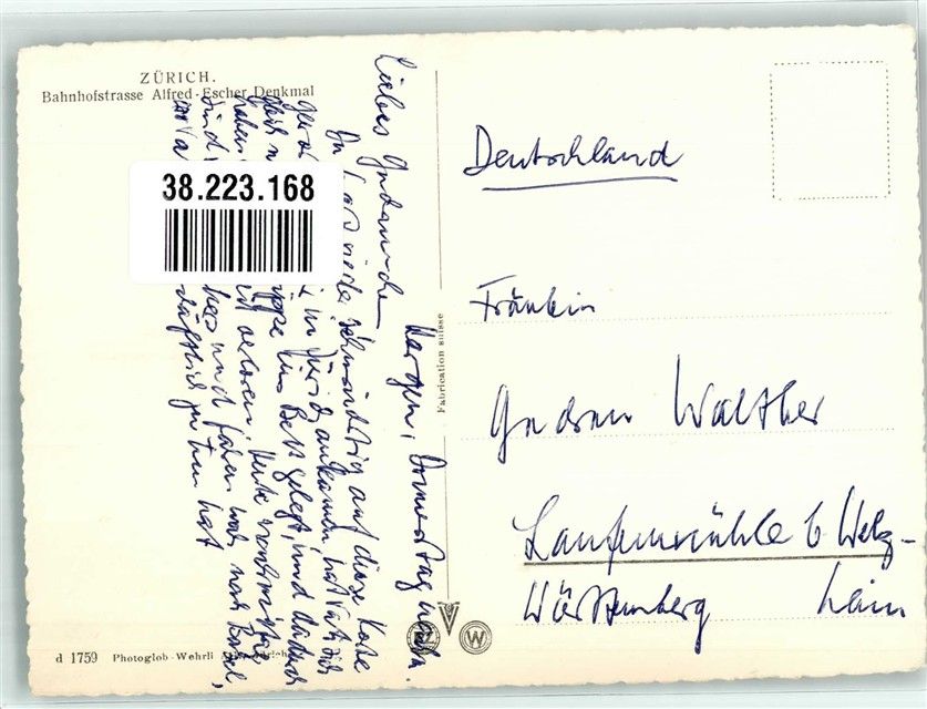 8000 Zürich Foto AK Denkmal Alfred Escher Bahnhofstrasse Auto Straßenbahn