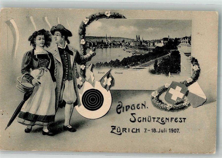 Zürich, Schützenfest 1907 Tracht Schießscheibe