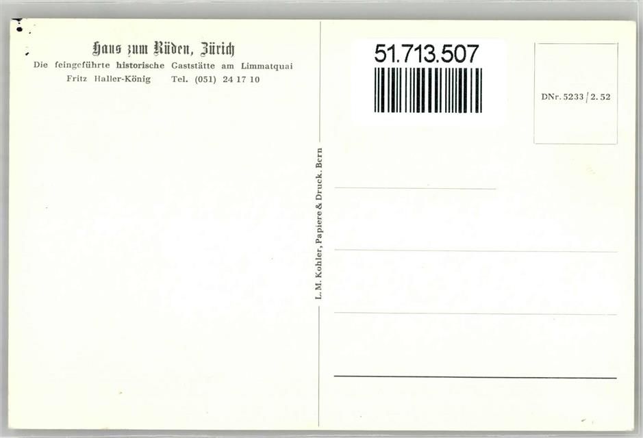 8000 Zürich - Gasthaus Haus zum Rüden Kirche