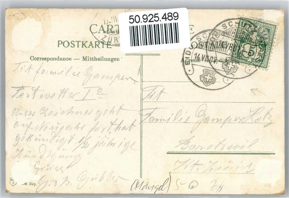 8000 Zürich Gebrauchsspuren Eidgenössisches Schützenfest 1907, Großmünster