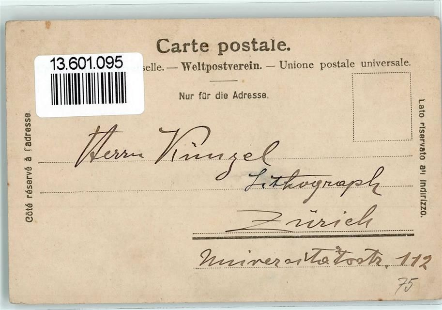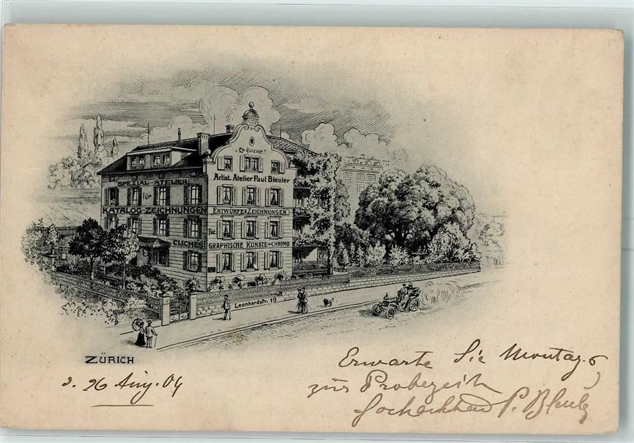 8000 Zürich Künstlerkarte Artist. Atelier Paul Bleuler Leonhardstrasse 19
