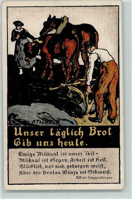 Zürich, Kriegsnotunterstützung der Stadt Zürich Ochsenpflug FeldarbeitUnser täglich Brot gib uns heute sign A. Thomann