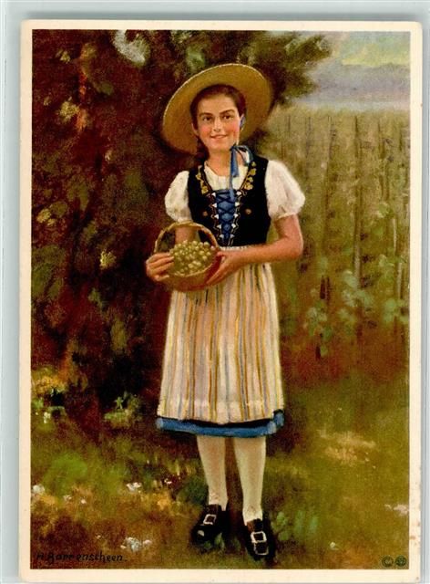 8000 Zürich Künstlerkarte Mädchen Weintrauben sign. Gorrenscheen
