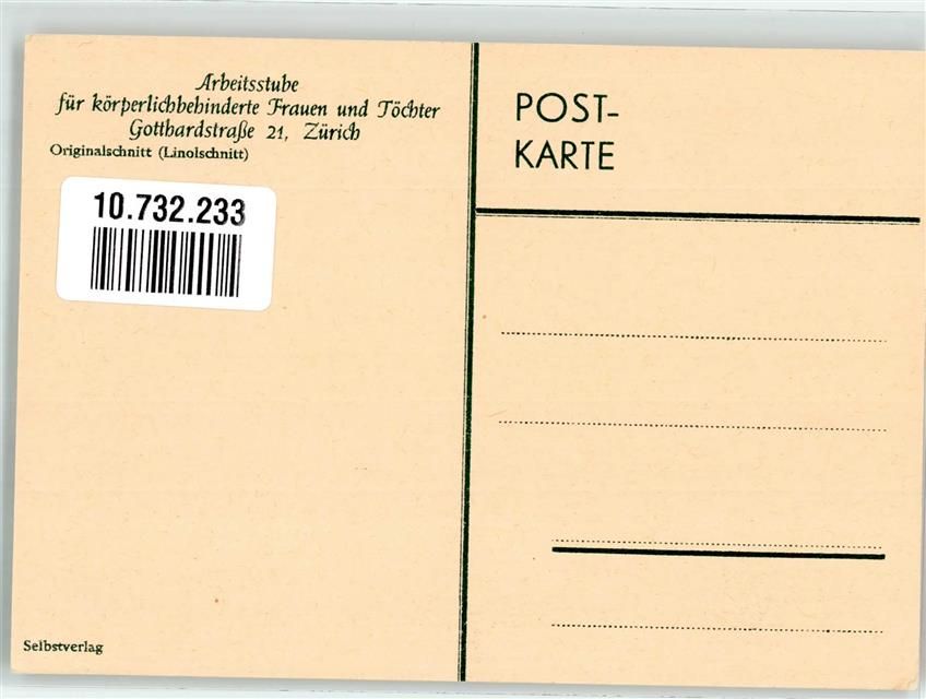 8000 Zürich Künstlerkarte Originalschnitt Linolschnitt Arbeitsstube für körperbehinderte Frauen