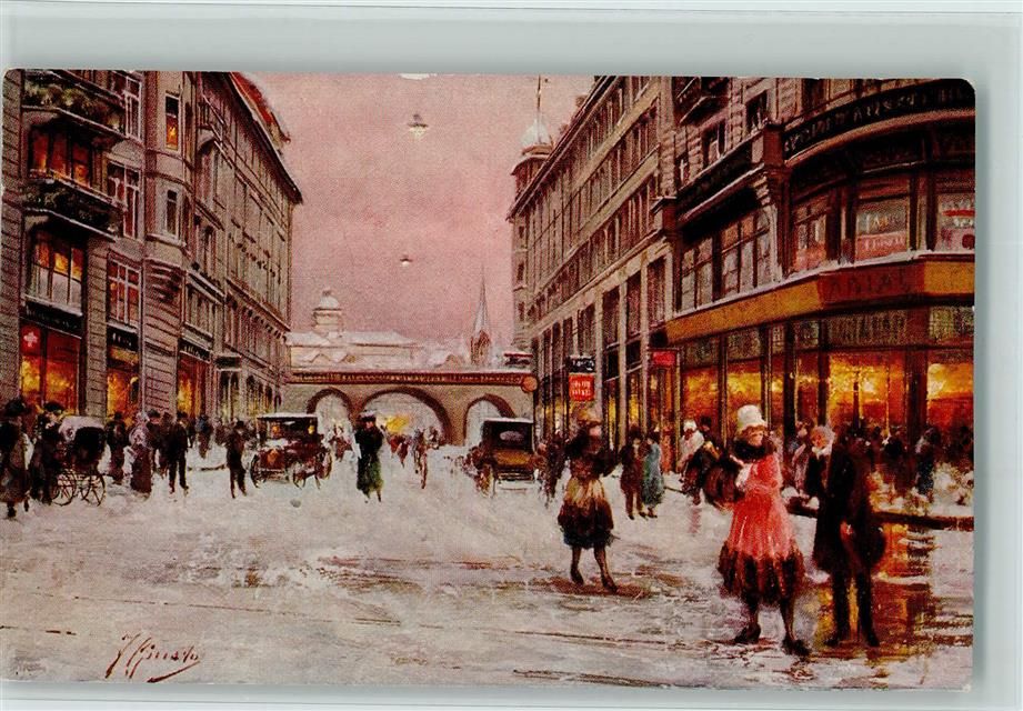 8000 Zürich Künstlerkarte Winter Uraniastrasse Blick auf die Universität sign.