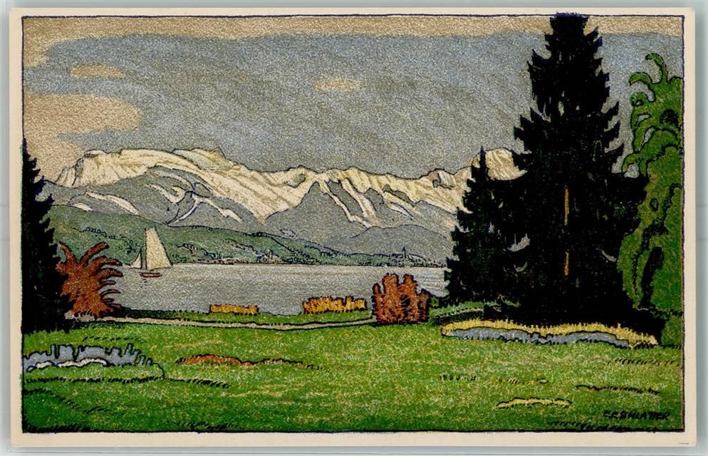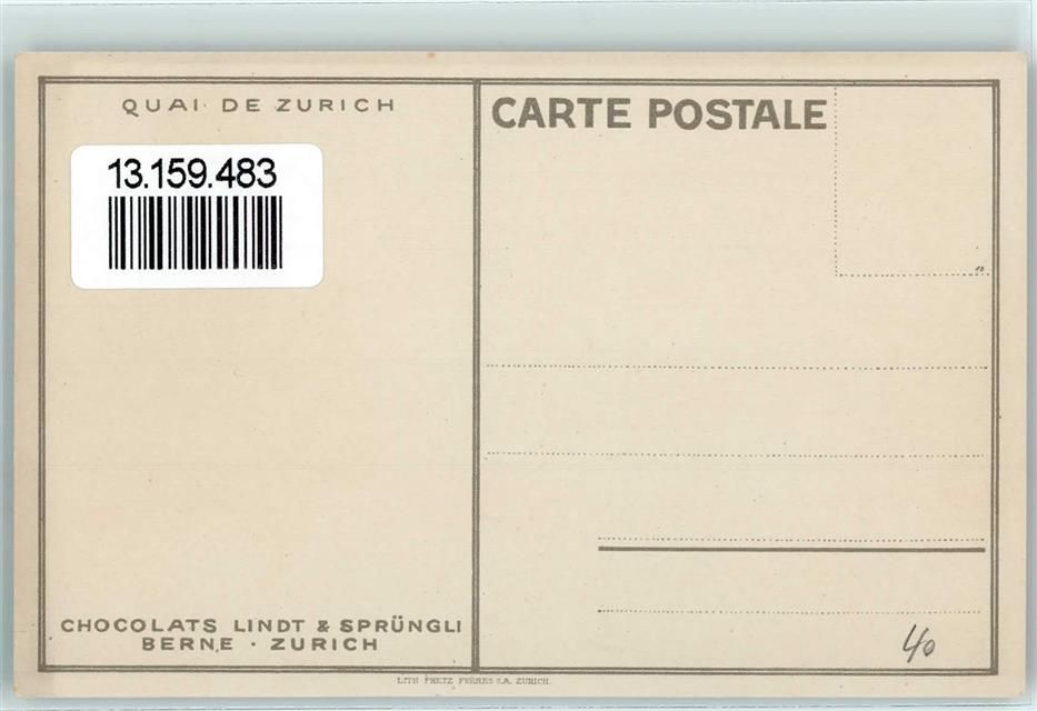 8000 Zürich Künstlersteindruck Quai sign E. E. Schlatter Werbung Chocolats Lindt & Sprüngli