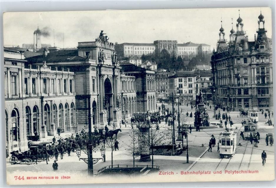 8000 Zürich - Lifaßsäule, Bahnhofplatz, Bahnhof, Straßenbahn, Polytechnikum, Kutsche