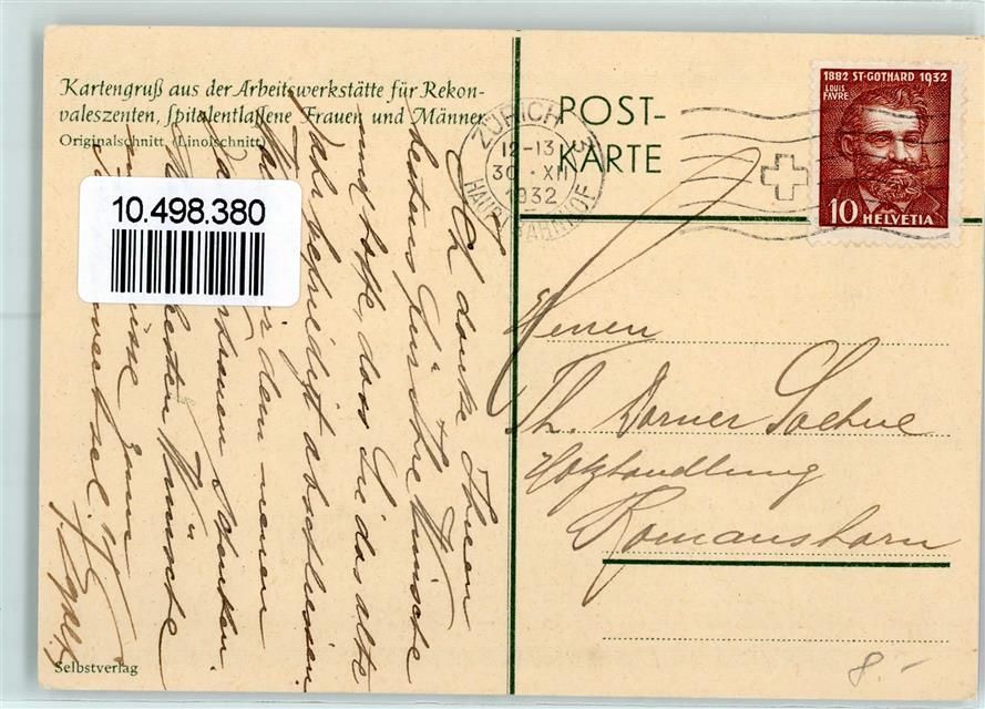 Zürich, Linolschnitt aus der Arbeitswekstätte für Rekonvelszenten