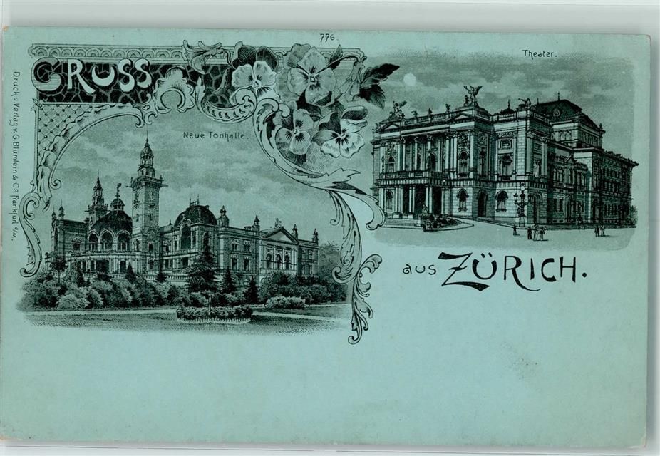 8000 Zürich Lithographie Neue Tonhalle Theater