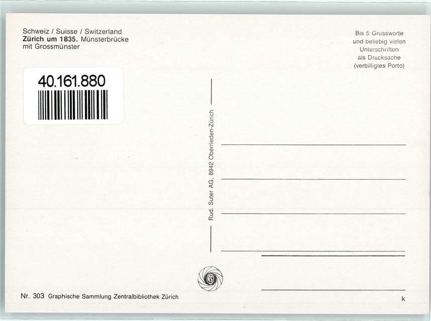 8000 Zürich Lithographie Zürich um 1835 Münsterbrücke mit Grossmünster