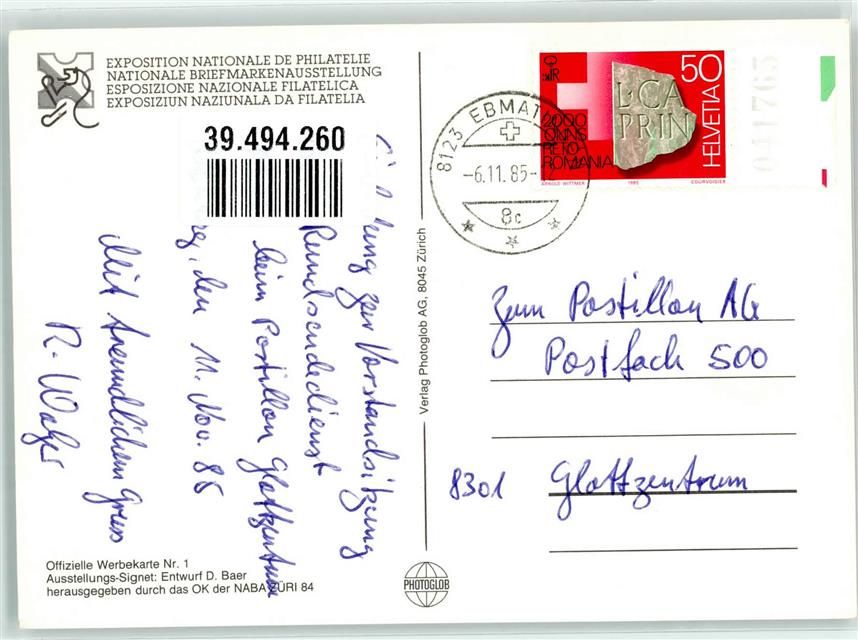 8000 Zürich - Nationale Briefmarkenausstellung NABA Züri 84 Serie Nr. 1