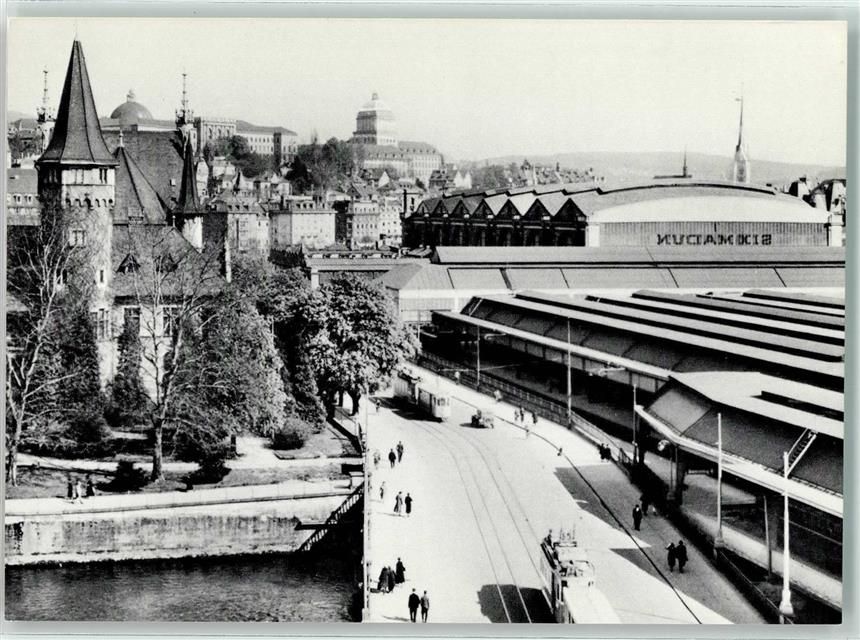 Zürich, Neue Perronhallen Kopfperron 1933 Straßenbahn