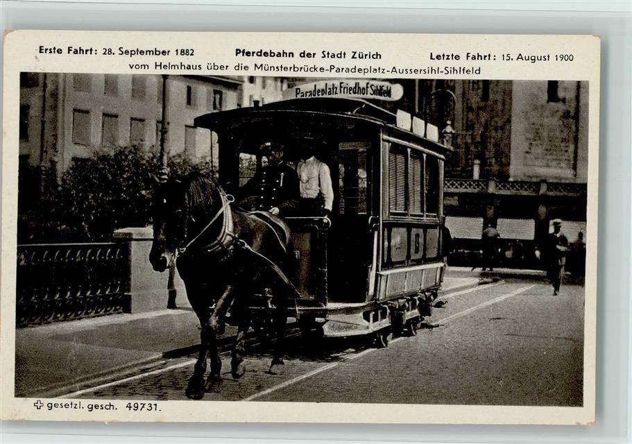 8000 Zürich - Pferdebahn letzte Fahrt 1900 Helmhaus Straßenbahn