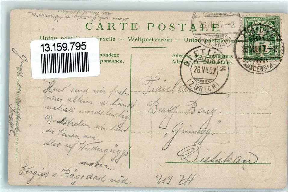 8000 Zürich Prägedruck Wappen Denkmäler Artist Atelier Guggenheim 7425 AK