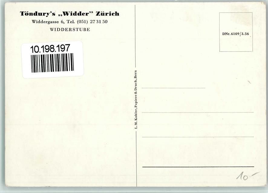 8000 Zürich - Töndury's Widder Widderstube