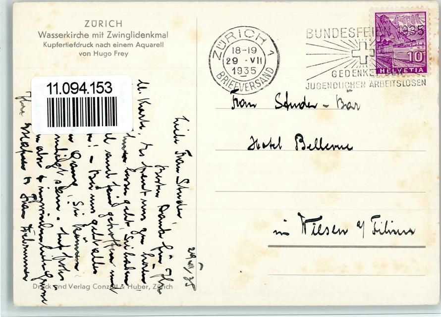 8000 Zürich - Wasserkirche Zwinglidenkmal sign Frey Hugo