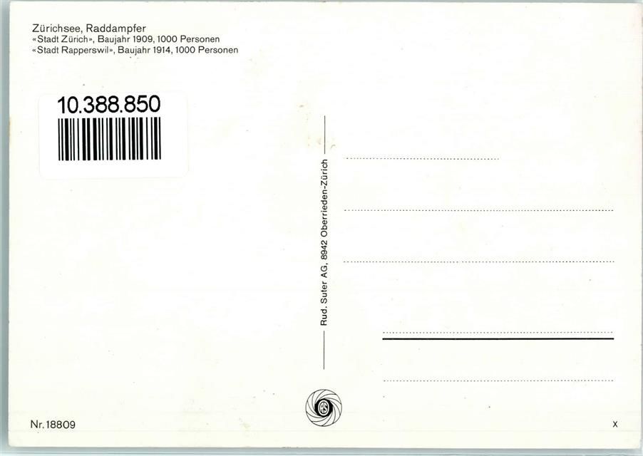 Zürich, Zürichsee Personendampfschiffe Raddampfer Stadt Zürich Baujahr 1909 1000 Personen Stadt Rapperswil Baujahr 1914 1000 Personen Wappen