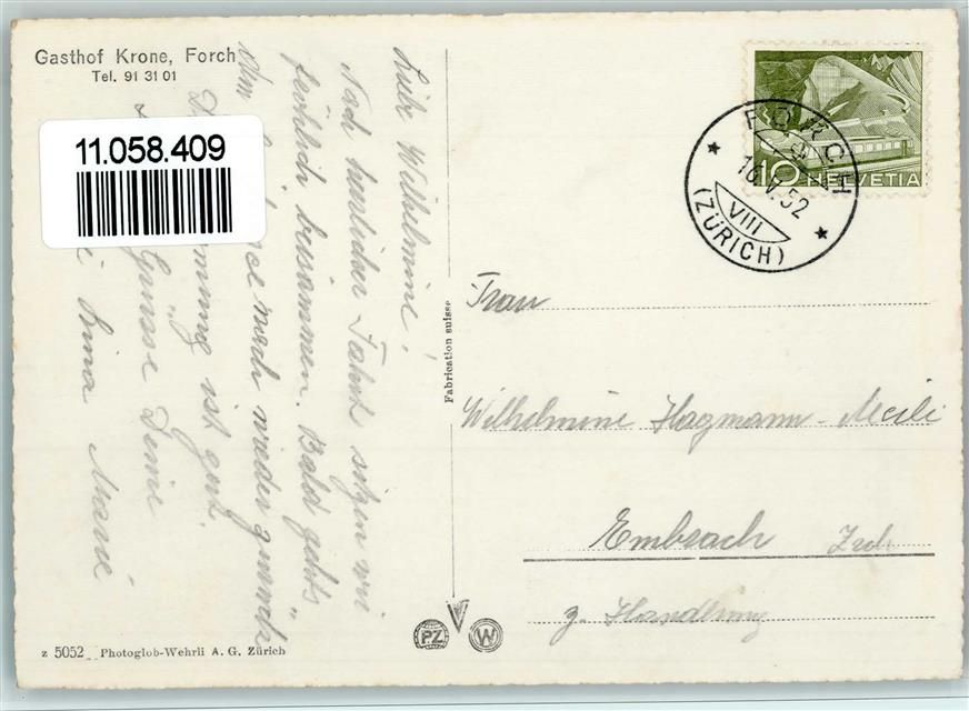 8127 Forch - Gasthof Krone Kant. Zürcher Wehrmänner-Denkmal auf der Forch